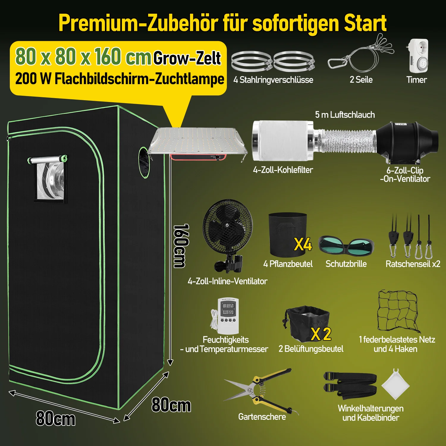 1 x Growzelt 80 x 80 x 160 cm
